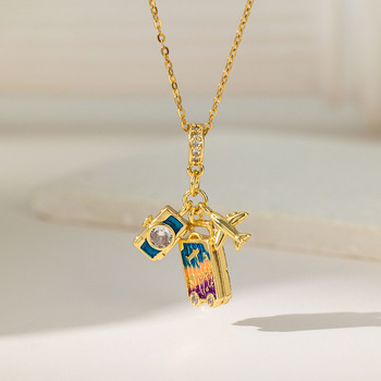 Hainon金メッキブルーアース飛行機ジルコンカメラトランクペンダントネックレス誕生日プレゼント卒業ギフト