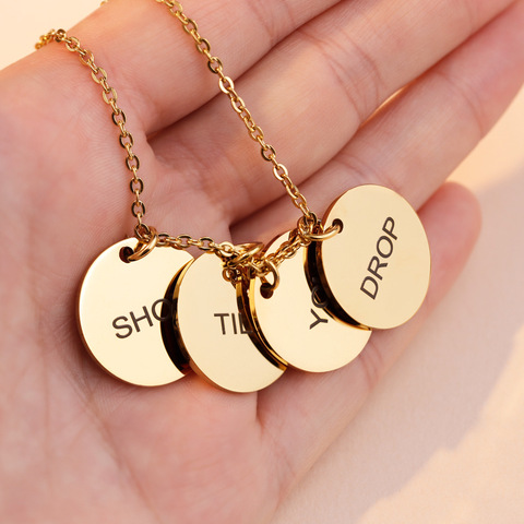 Hainon Diyパターン女性の名前鎖骨チェーンステンレス鋼ラウンドプレートネックレス